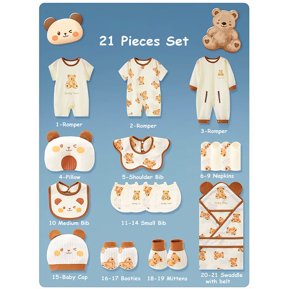 LSB 21 pcs Brown Cream Lovely Bear Newborn Baby Girl/ Boy Gift Box , all season wear Hamper, (0 - 12 months)