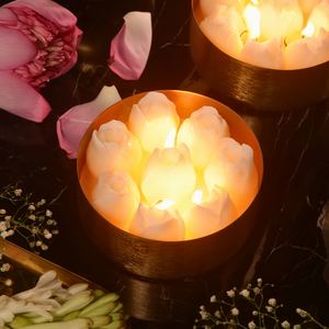 Make a statement with our Snowy Tulips Brass Candle. Perfect for festive décor, home styling, or gifting, its elegant tulip design in premium metal radiates a warm, sophisticated glow that enhances any space.