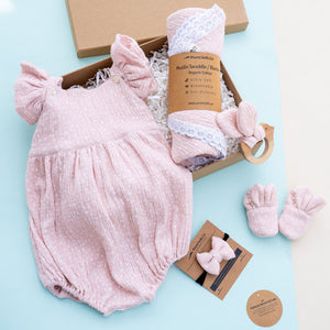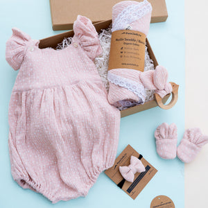 Made from 100% pure cotton gauze, this handcrafted baby romper is the perfect blend of comfort, style, and sustainability. Soft on delicate skin and lightweight for all-day wear, it’s designed to make your little one feel cozy and free. Shop matching handmade accessory and booties, making it an ideal choice for baby photoshoots, special occasions, or as a thoughtful newborn gift.