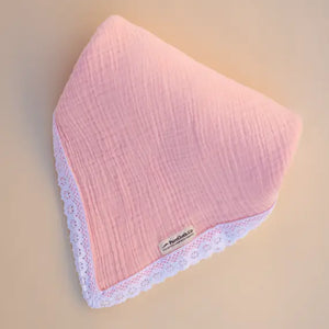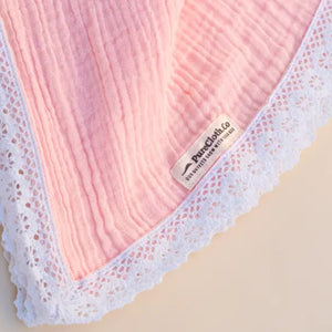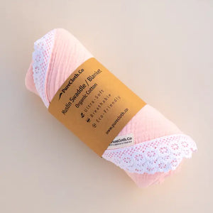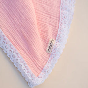 Organic Muslin Baby Swaddle/Blanket With Lace | Soft Pink Dream Wrap