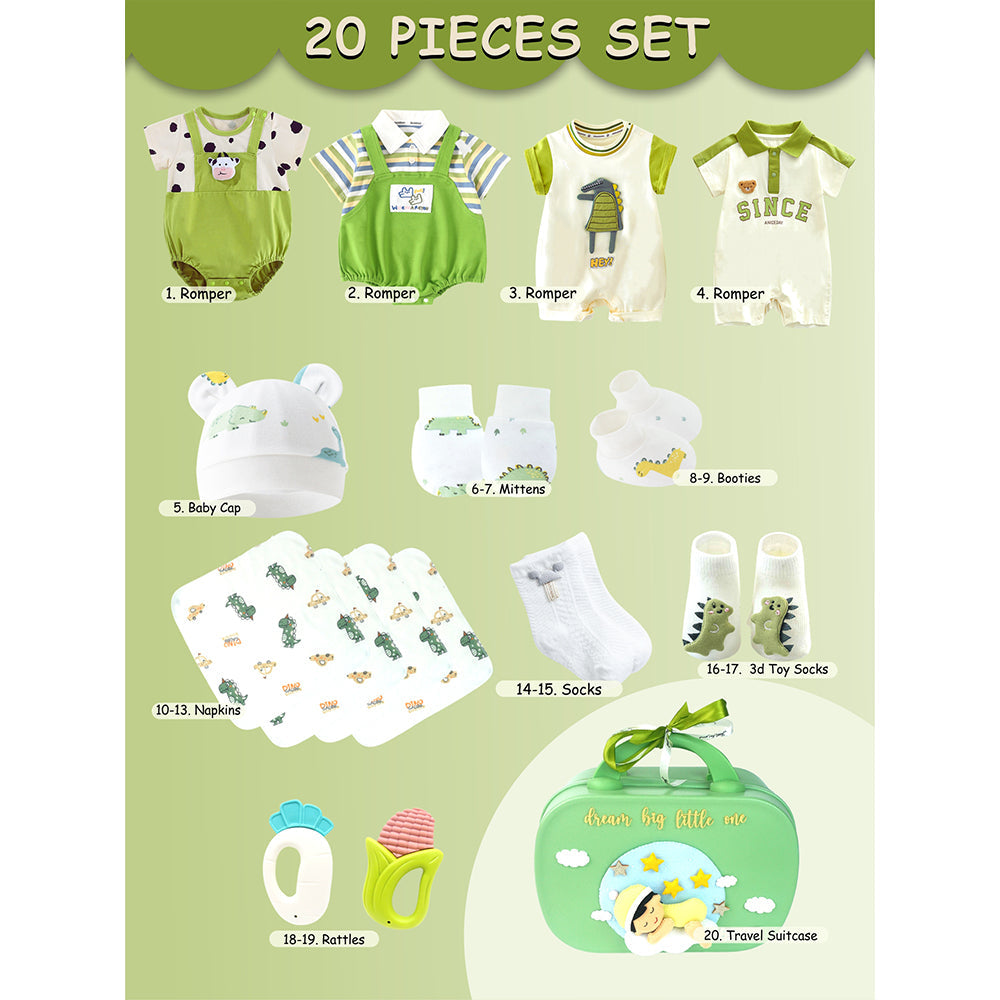 LSB 20 pcs Green Dream Big Baby Birthday Gift Hamper set for Baby with travelling suitcase