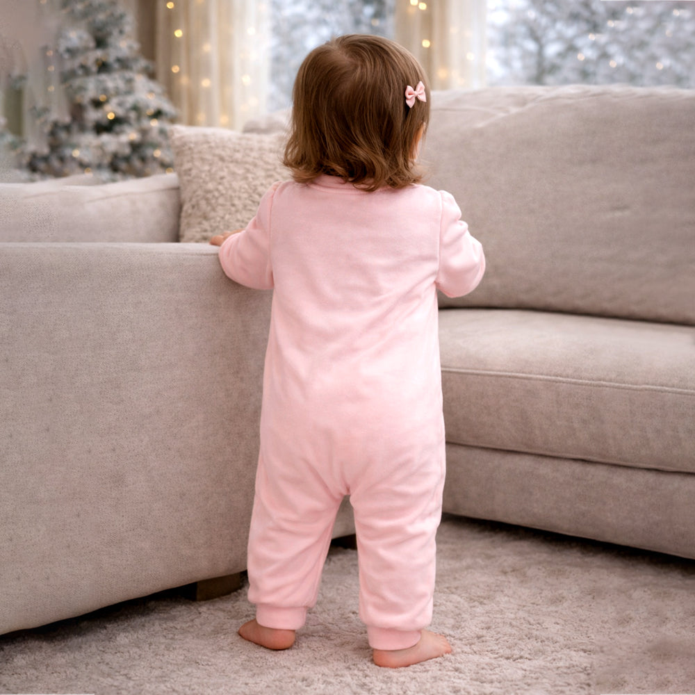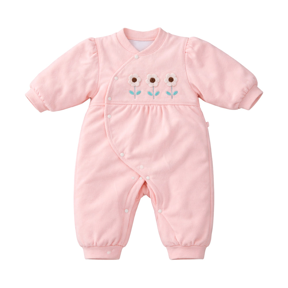 Peach 3Flower Winter Full Sleeves Jumpsuit Romper for Tiny Toddlers
