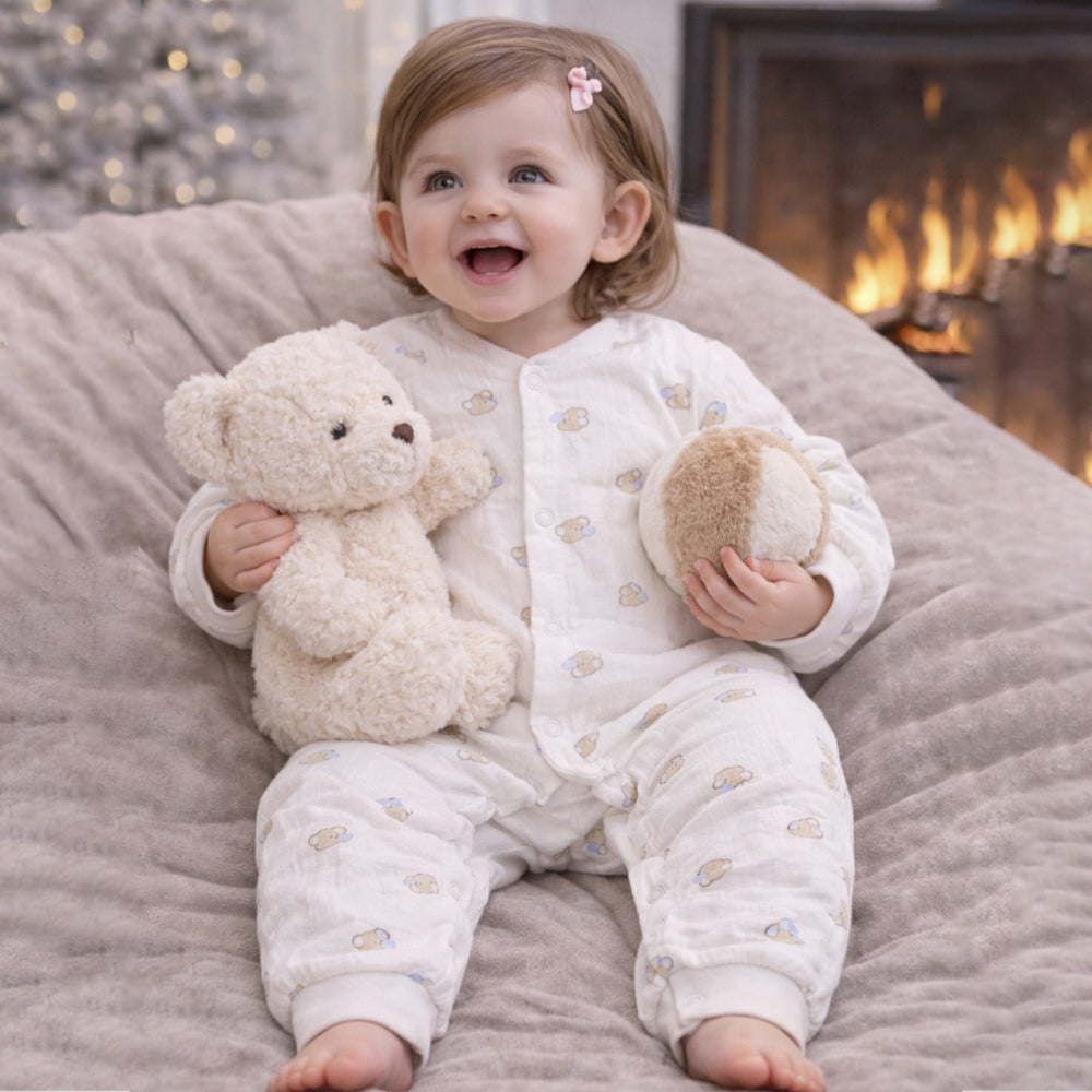 Teddy with Bubble Full Sleeves Jumpsuit Hoodie Romper for Tiny Toddlers