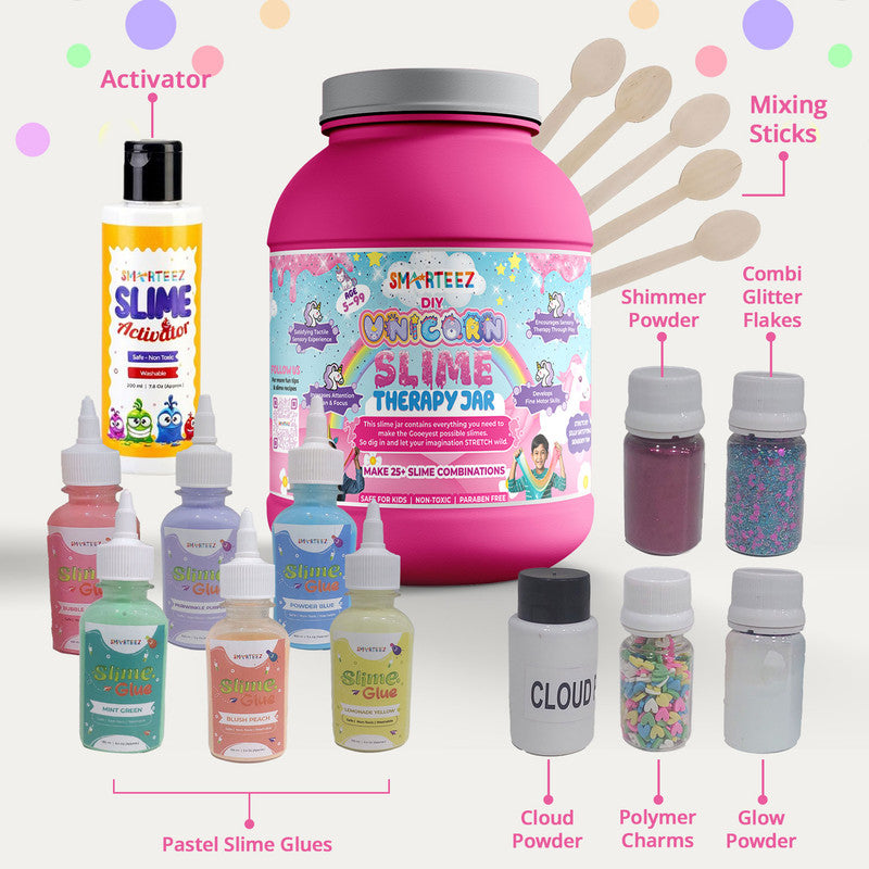 The Smarteez Unicorn Slime Therapy Jar Is The Perfect Way For Boys And Girls To Make Slime At Home. The Liquid Gel Toy Is Smooth And Stretchy, And Helps Kids To Create The Perfect Slime Every Time. The Activator Is Also Non-Toxic, Making It Safe For Kids To Use.