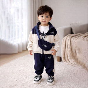 3 Pcs Set, Navy & Cream Tracksuit with and matching Sling Bag for Kids