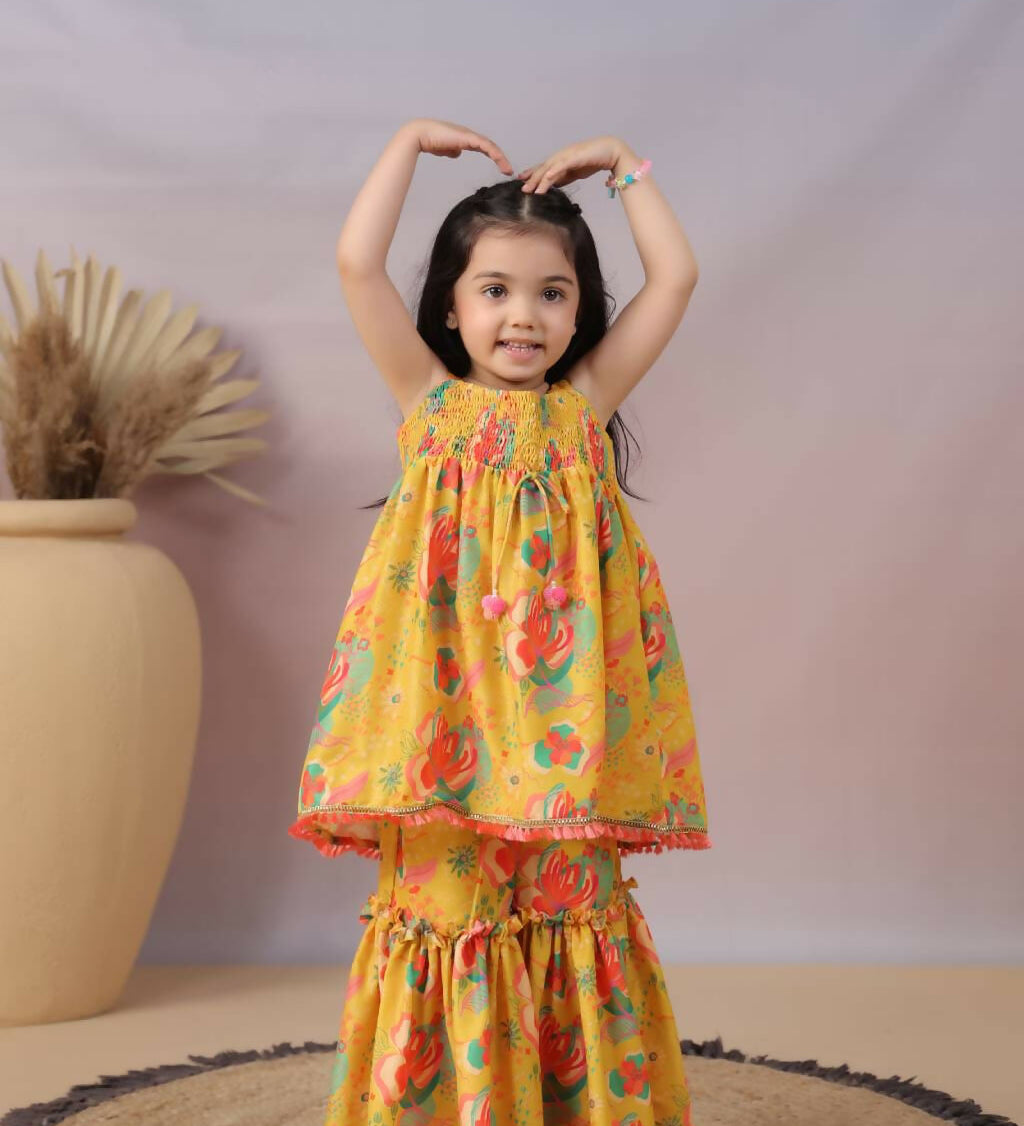 Casa Nions Yellow Muslin Sharara Set