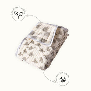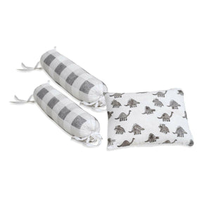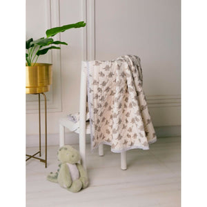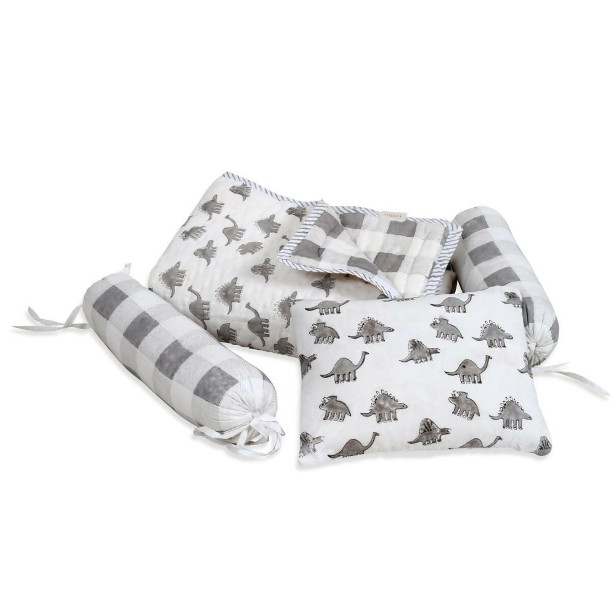 A perfect set for your little Infant. Our signature Infant Quilt with perfect companions of two Bolsters and a Pillow. The pillow and bolsters come with 100% cotton. Block printed cotton muslin, hand quilted with cotton lining. Made with 100% cotton. Breathable soft and cozy.