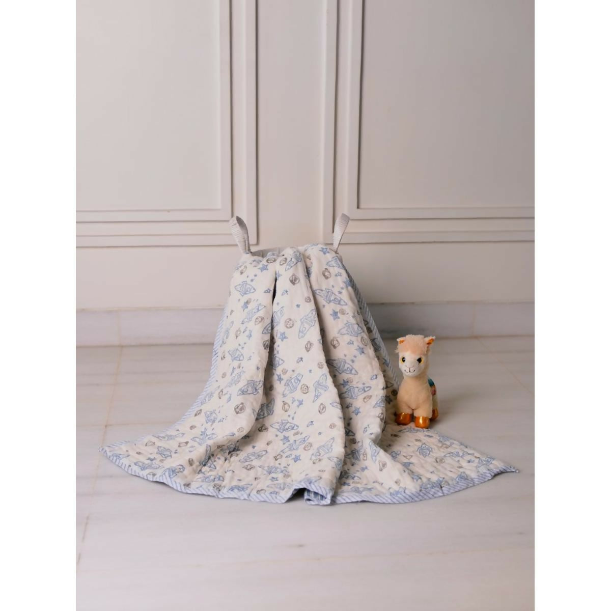 Snuggle up and stay cozy, in our handcrafted quilt. Block printed cotton muslin, hand quilted with cotton lining. Made with 100% cotton. Breathable soft and cozy.