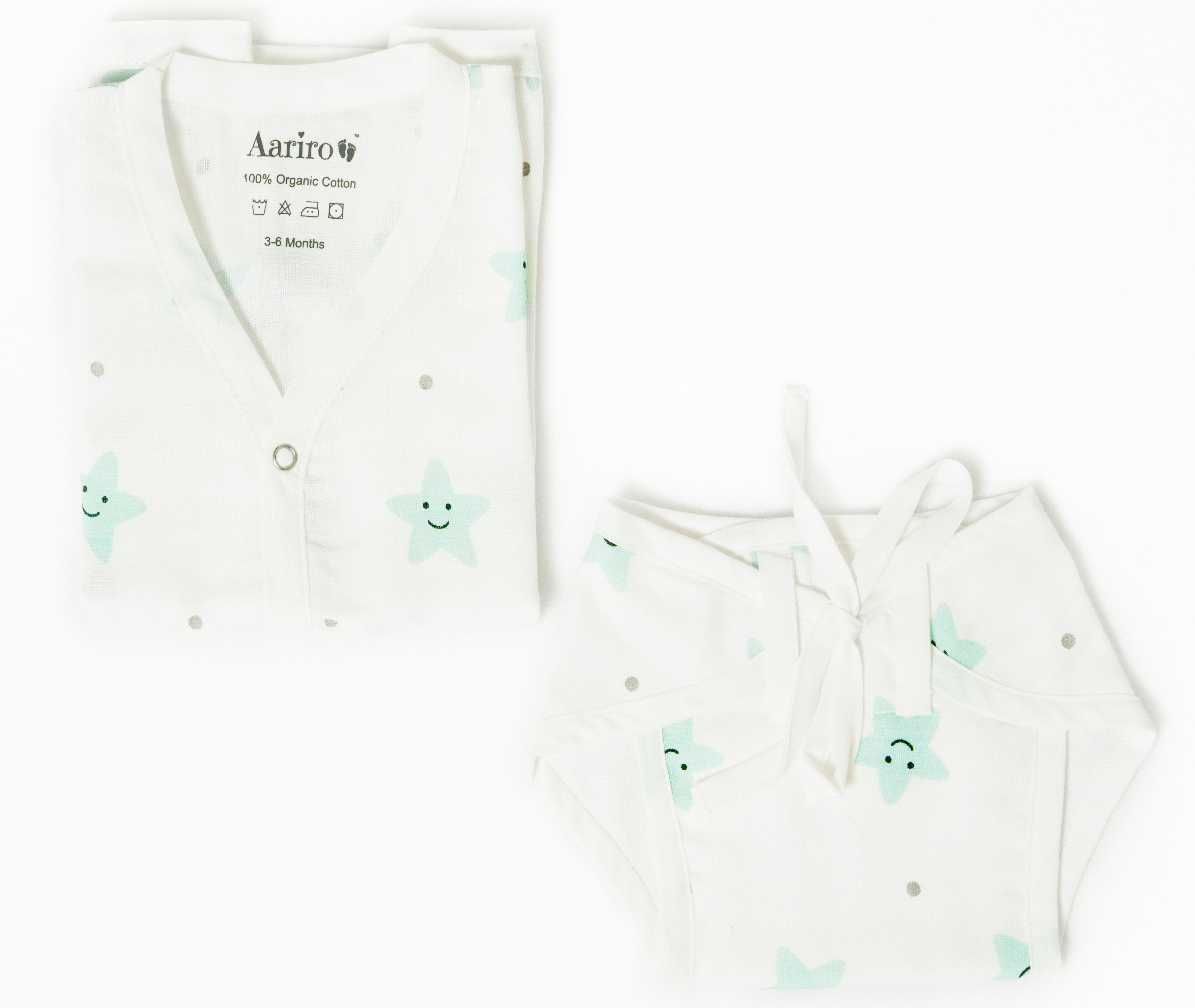 Aariro Jabla & Nappy Combo (4 Pcs) - Mint Smiley Star (0-3 Months)