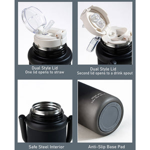 1.Unique thermos style Flip Lid Bottle: Chuck the old style water bottle and indulge in our unique and attractive dual drinking style flid lid water bottle.