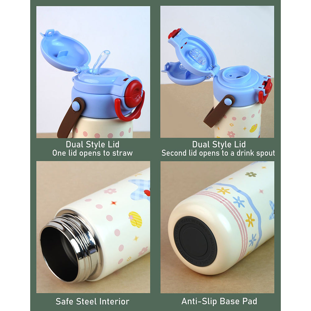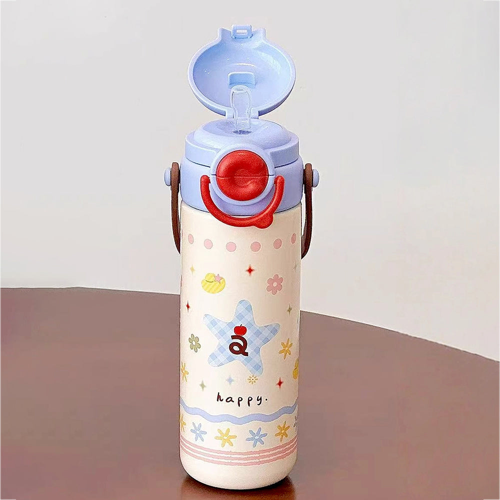 3. Product Design: This bottle features a soft pastel design with a blue star element, tiny flowers, playful doodles, and a cheerful “happy” text, giving it a sweet and joyful look kids will love.