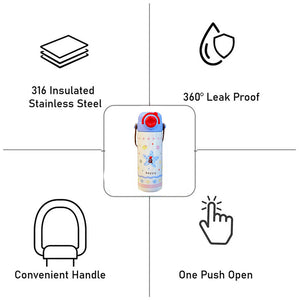 2.Dual Feature Lid Design: This piece is uniquely designed where the child can sip the liquid either through a silicone straw or through a wide mouth. The unique feature allows one to carry Juice or Water in this bottle. The wide mouth opening ensures that the juices can easily flow and does not get stuck in the straw while sipping.