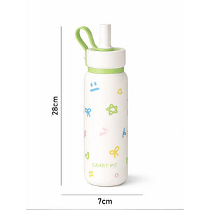 LSB, Cream Green Bow & Star Jumbo Straw Series Stainless Steel Water Bottle fot kids, Teens and Adults,700 ml