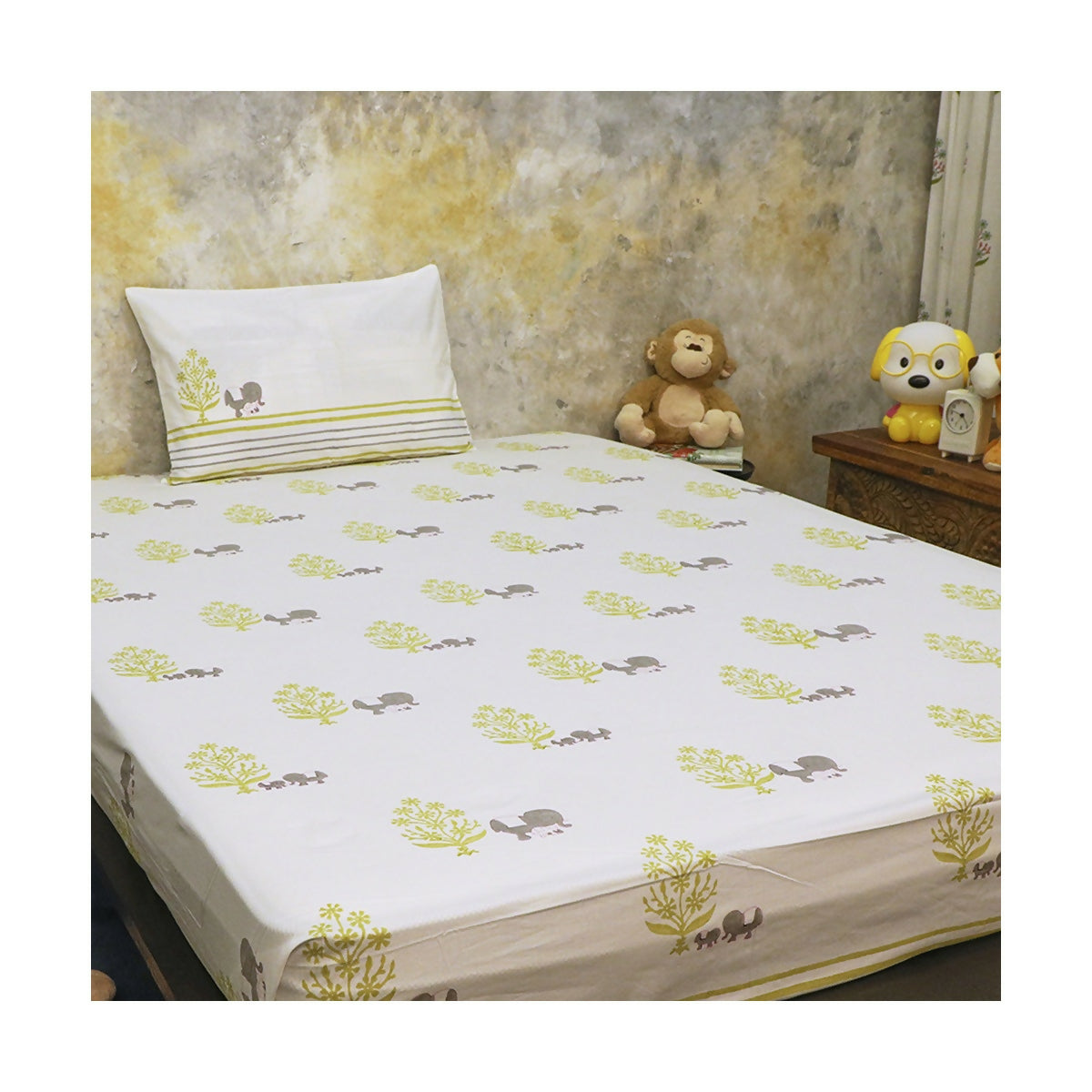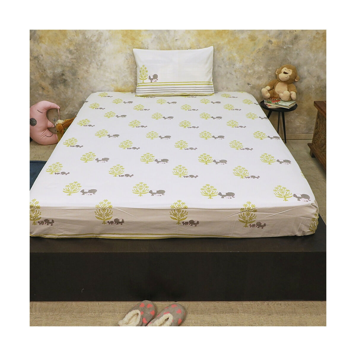With our super soft cotton sheets, let toddlers create one of their most cherished memories in Masaya land. This cute elephant hand printed with love for your little one. A print so versatile, it is perfect for your room, as well as your kids room.