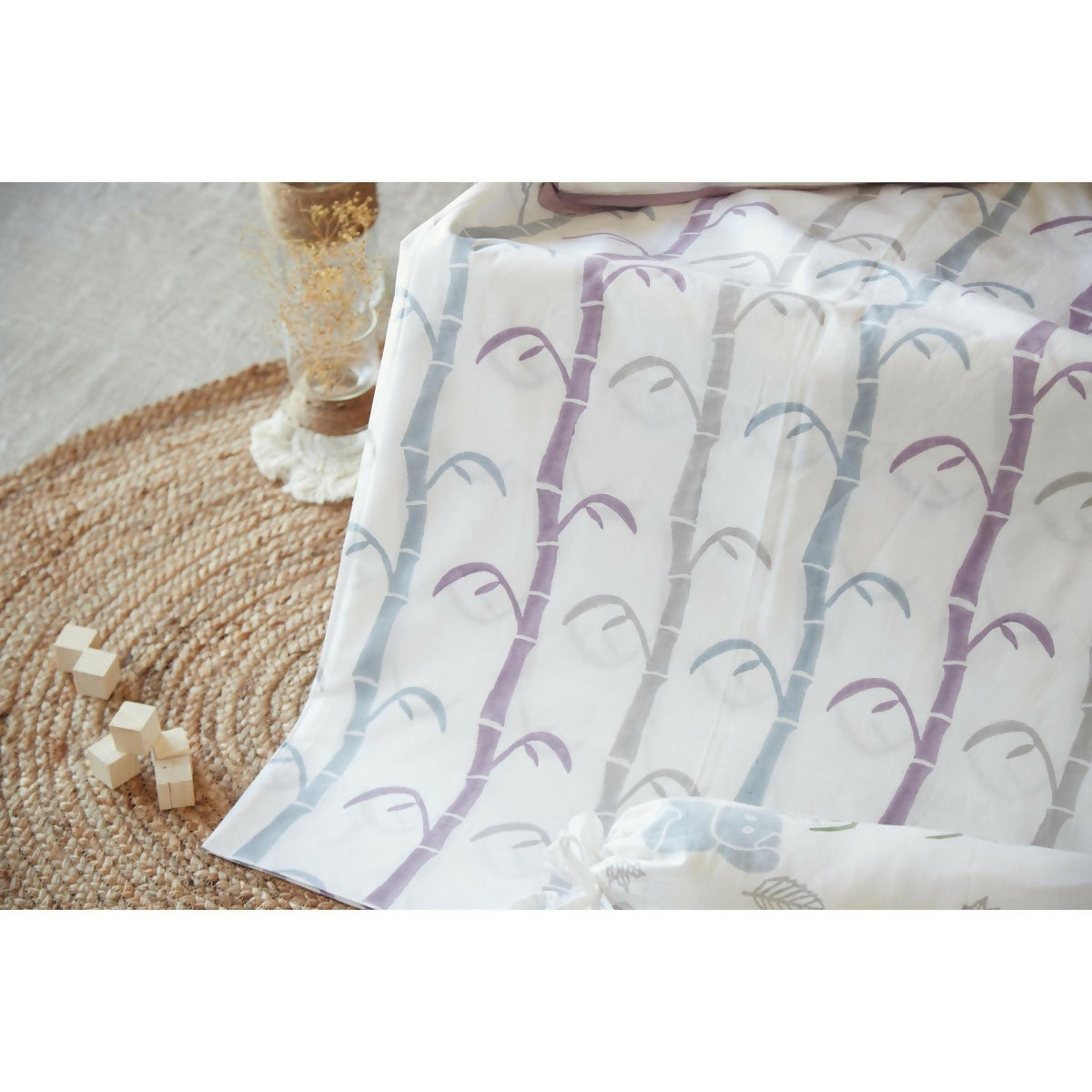 Cot Bedding Set with dohar also includes a matching mask set for you and your little one.