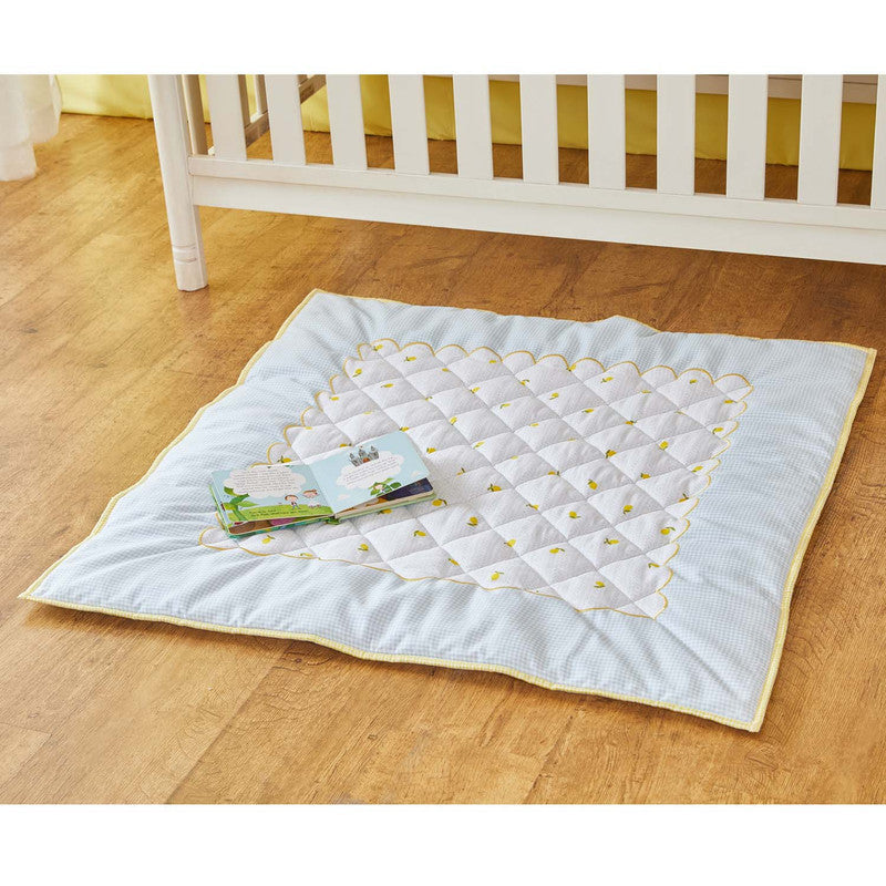 Bright, fresh, and full of joy! This lemon-themed quilted play mat with scalloped edges offers a cozy space for play and discovery. The ultra-soft padding supports tummy time, crawling, and early movement. With a generous 100 cm x 100 cm size, it s perfect for little ones up to 2 years to play and relax.