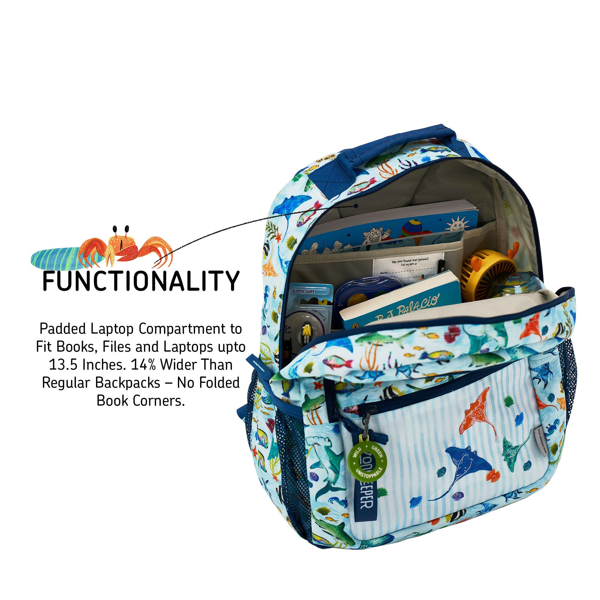 > 14% Wider Than Regular Backpacks – No Folded Book Corners!