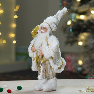 1. Exclusive Design: This graceful Santa, dressed in a white and gold robe with soft fur lining and elegant gold detailing, adds a touch of sophistication and charm to your Christmas decor. With his warm smile, sparkling eyes, and snowy white beard, he brings festive cheer and a serene charm to any space, perfect for tabletops, mantels, or entry displays.