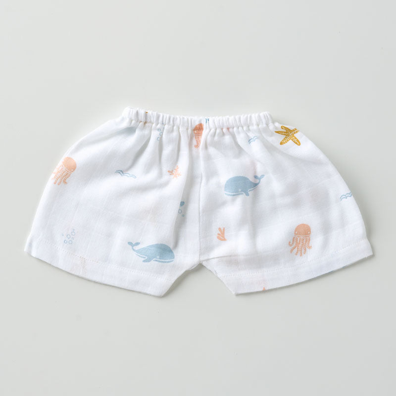 Our organic cotton muslin shorts are ideal for everyday use. It has gentle elastic waistbands that are gentle on baby skin.