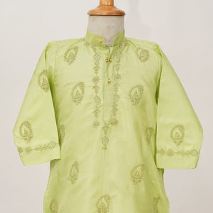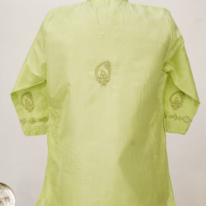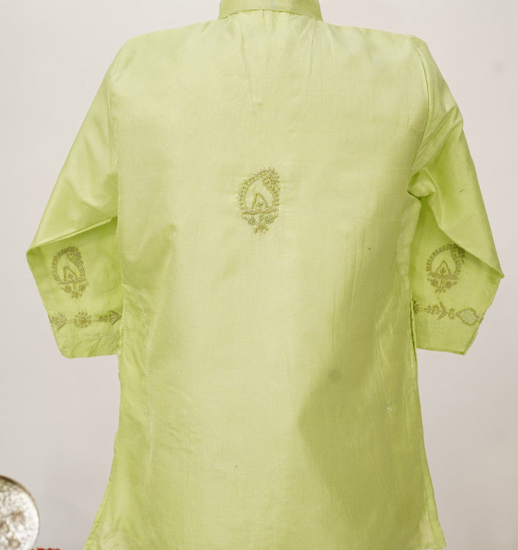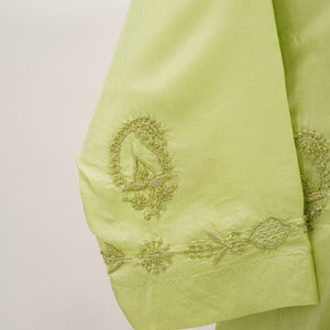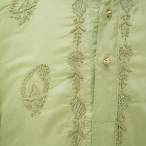 Chikan Hand Embroidered Green Silk Kurta With Silver Kasab Jaali