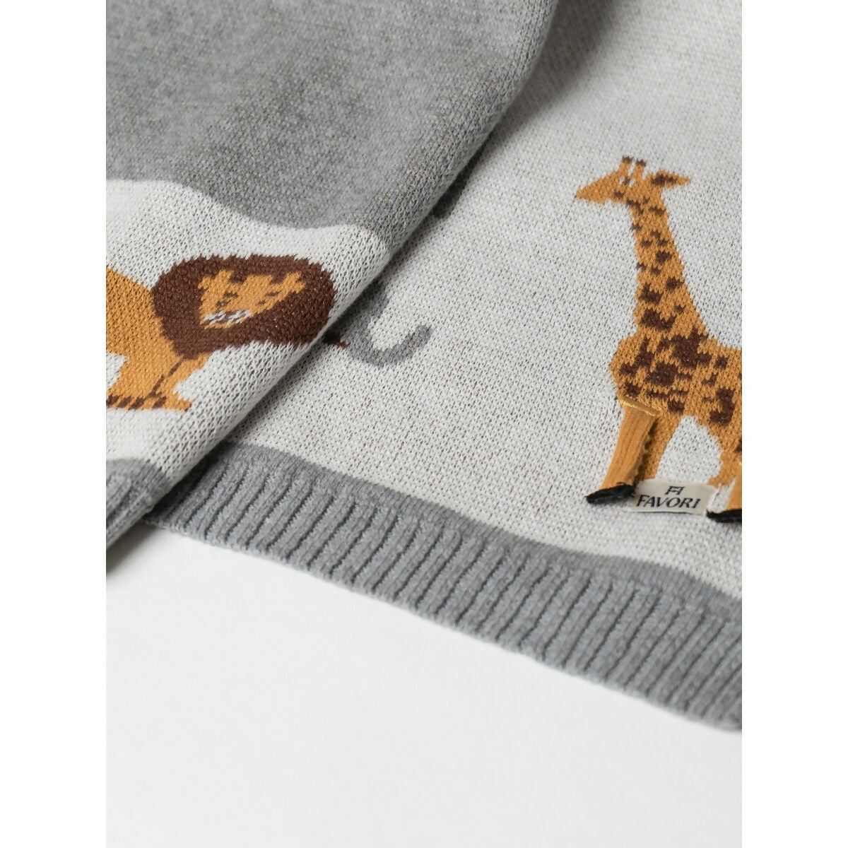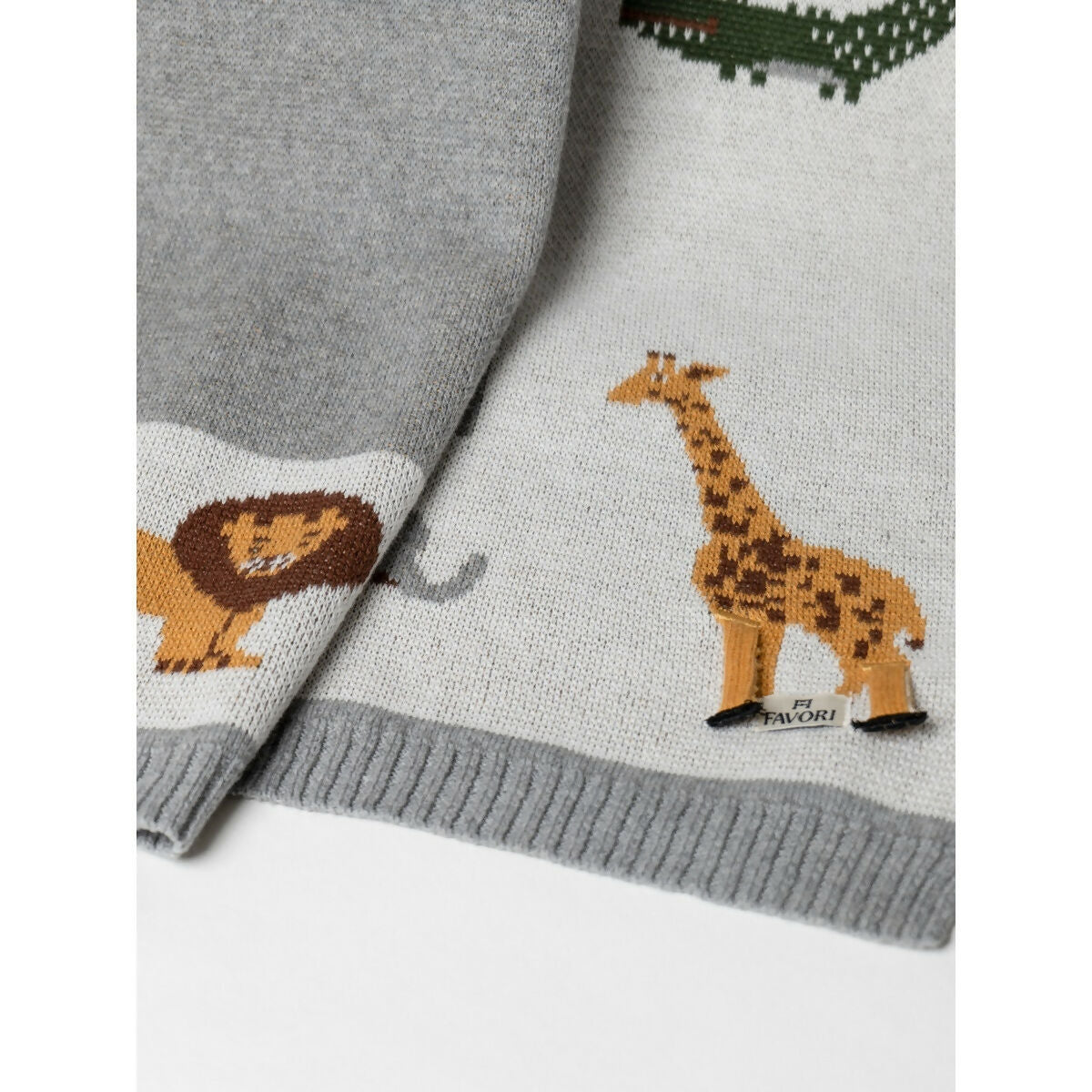 Favori Baby Blanket Jungle Safari Design With 3D Elements, 100% Cotton Knitted