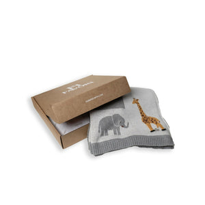 Wrap little explorers in cozy, natural comfort with our Jungle Safari blanket. Knitted from 100% cotton, the blanket is soft, breathable and gentle on delicate skin- perfect for naps, stroller rides and tummy time.?Delightful 3D applique elements add tactile play and visual interest, encouraging sensory discovery while remaining safe and snuggly.?Each piece is presented in a Favori brown kraft paper box