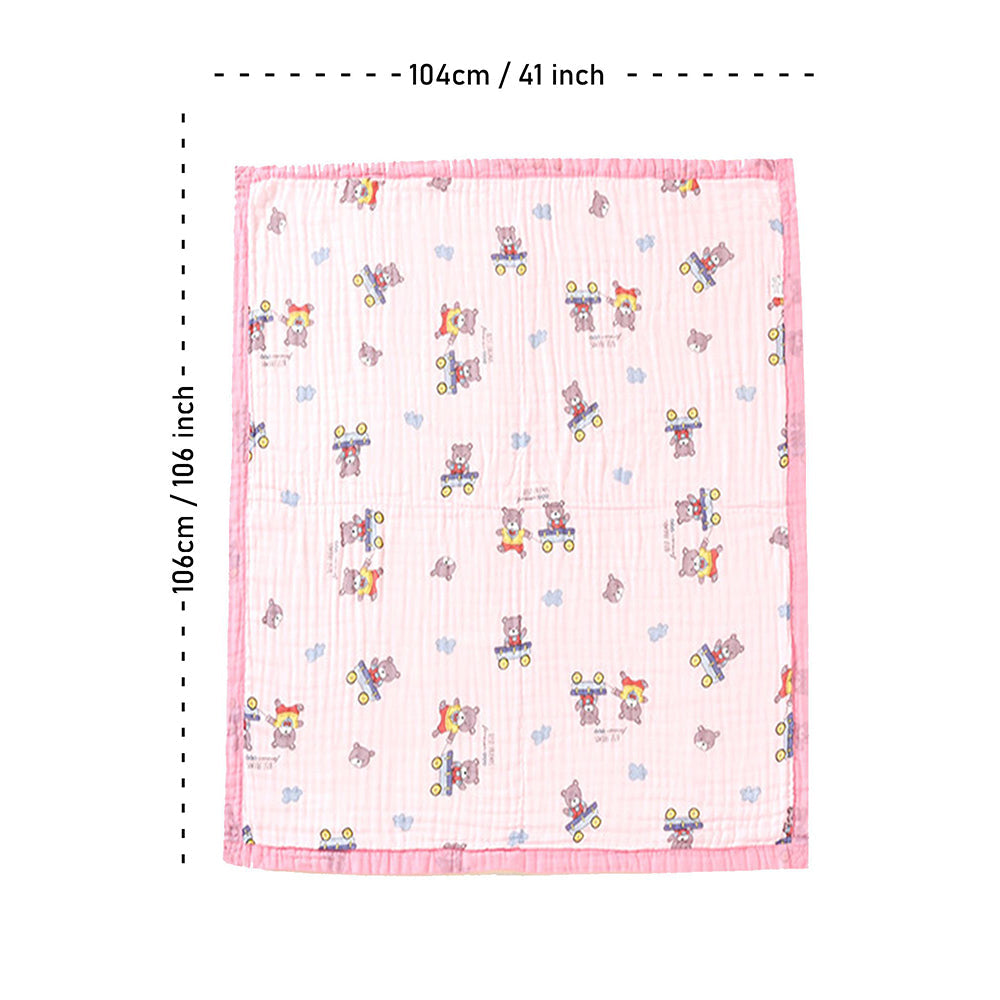 LSB Pink Cart Teddy, Super Soft Breathable Pure Muslin Cotton Blanket for Newborns & Infants with free storage pouch