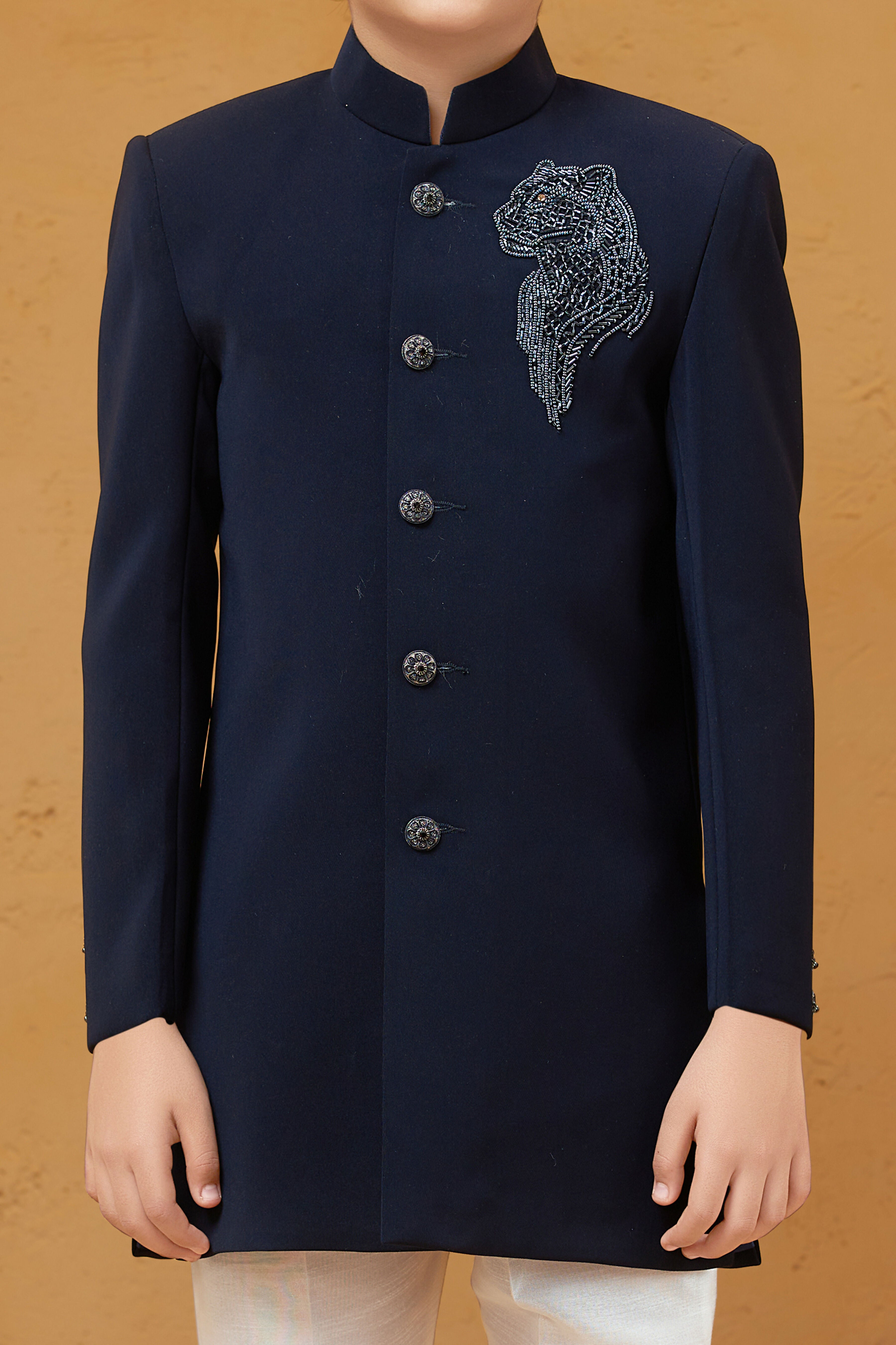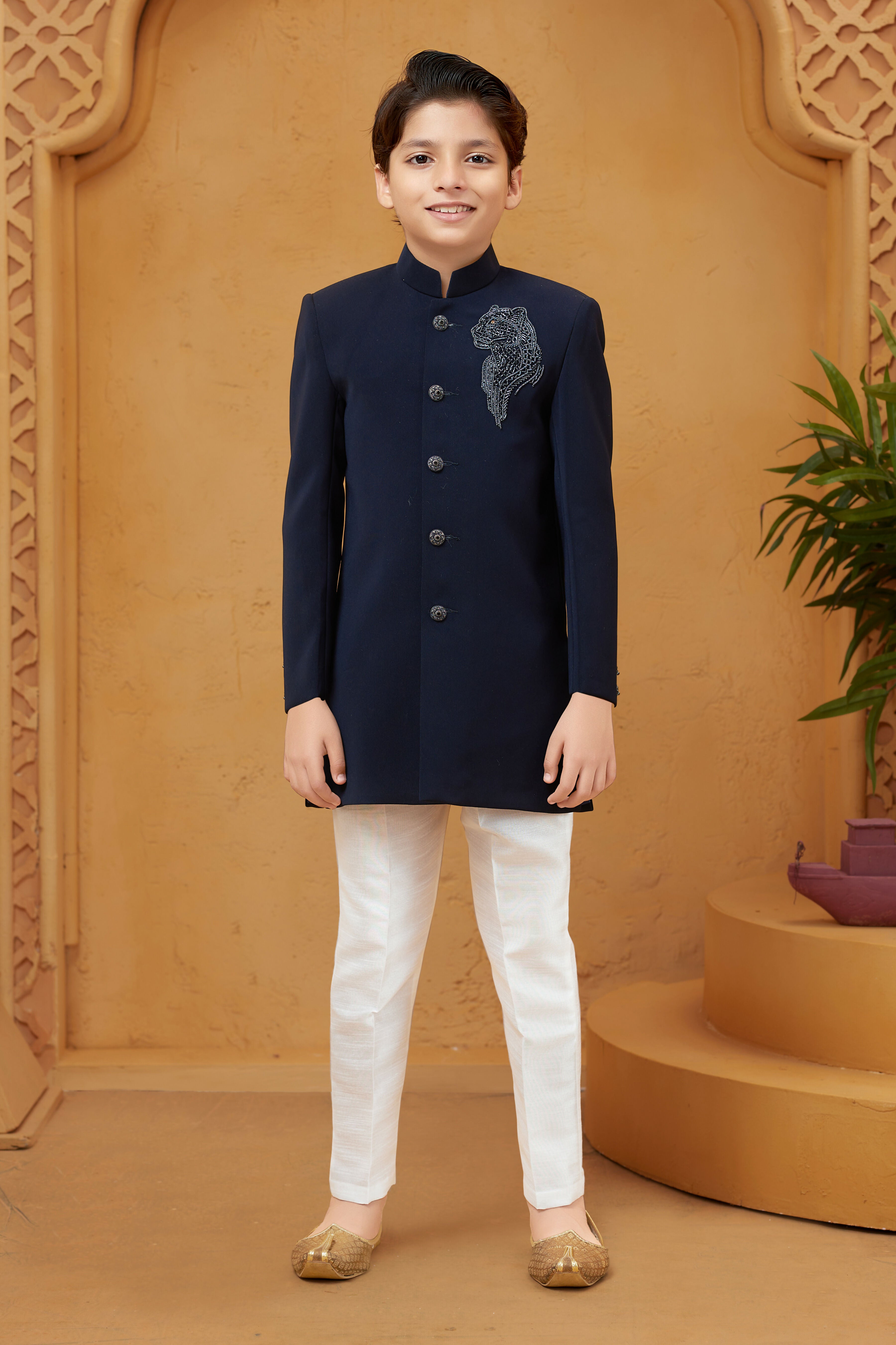 Sehmat Couture Boys Black Sherwani with Tiger Embroidery