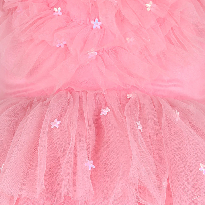 Stella Rossa Pink Ruffled Tulle Pearl Dress